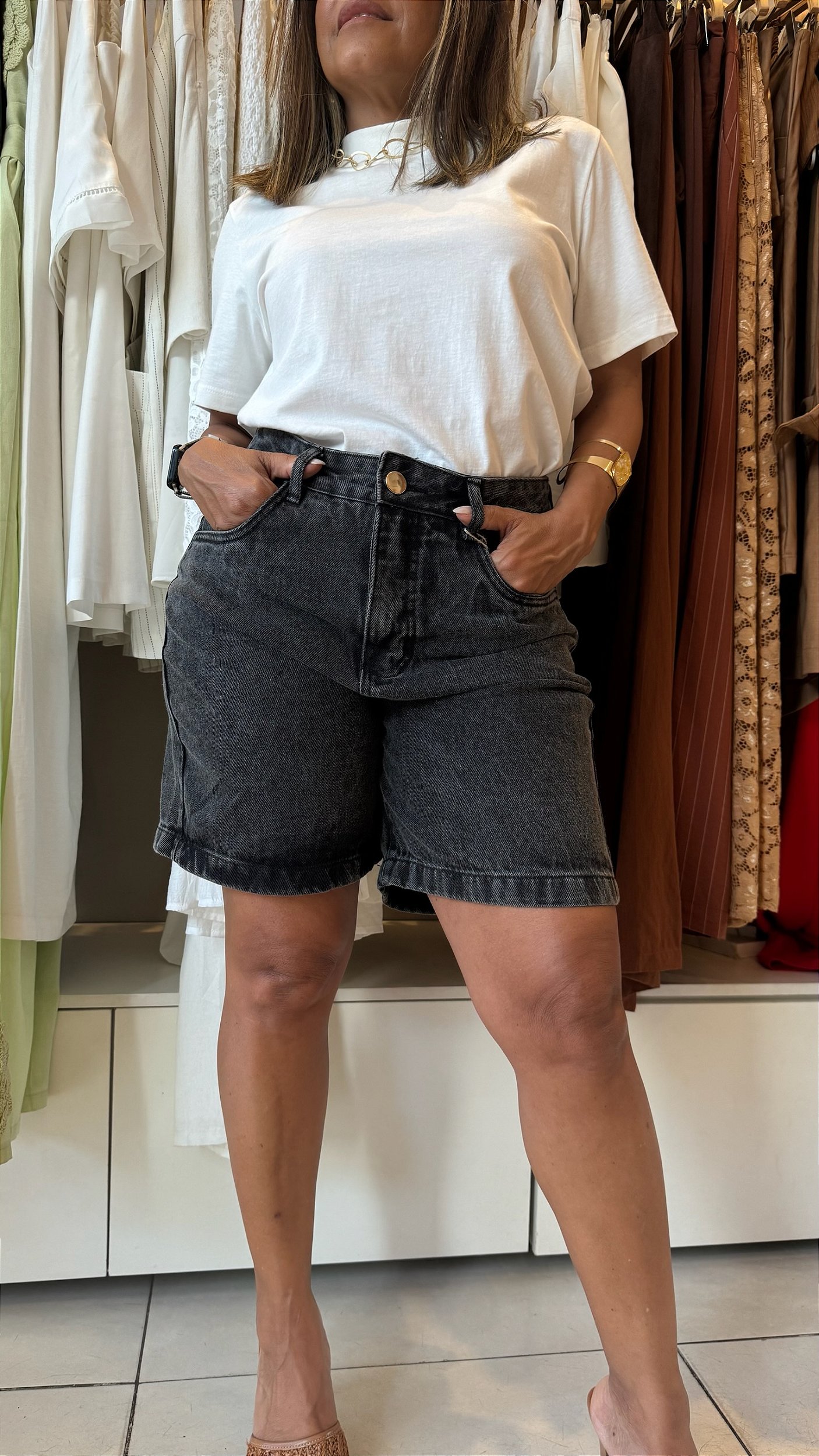 A Bermuda Jeans Carol é moderna e atemporal, perfeita para compor looks casuais com conforto.