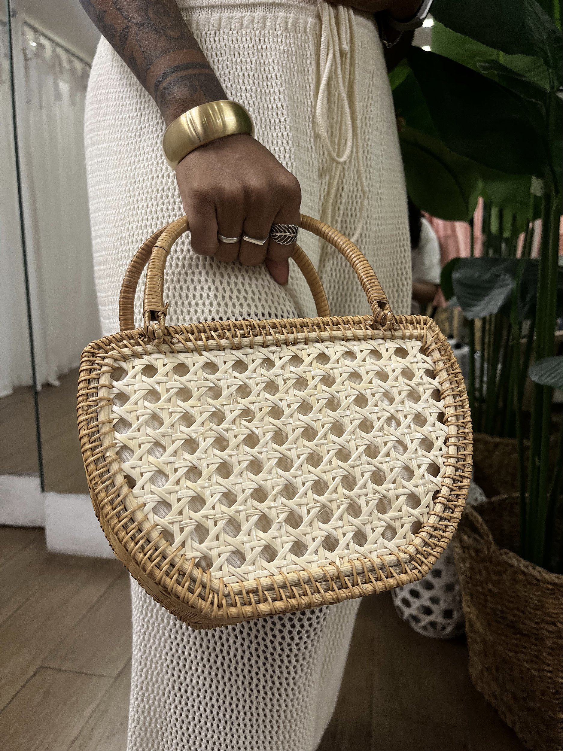 A Bolsa Magé é feita em palha com acabamento estruturado e alça firme no mesmo material, trazendo aquele toque artesanal elegante que transforma qualquer look. Possui forro interno em tecido, garantindo mais cuidado com seus itens, e um formato moderno que é delicado e estiloso na medida certa.