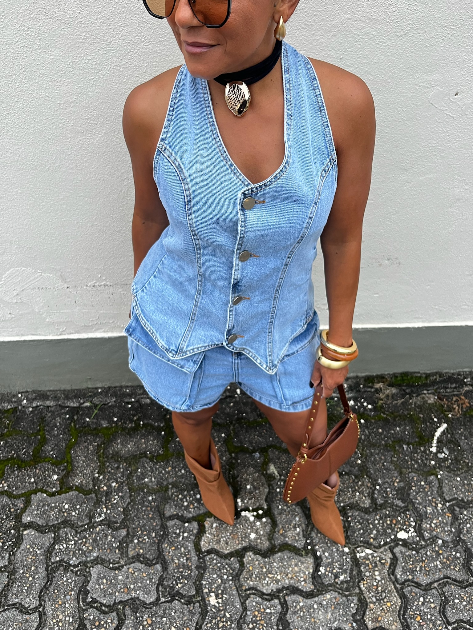 Modelagem frente única que valoriza o colo e destaca as costas. Possui botões frontais e regulagem no pescoço. Peça elegante e moderna.