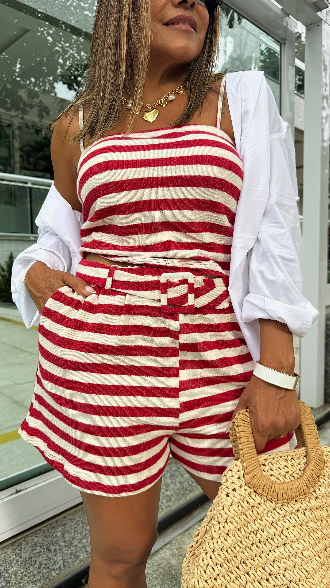 Malha levemente atoalhada, com cós de elástico e cinto removível. Possui bolso faca. Peça versátil que